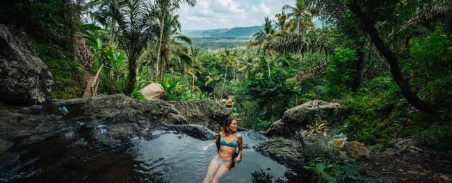 Relax in the natural pools of Gembleng Waterfall, a hidden escape in Bali’s Sidemen Valley.